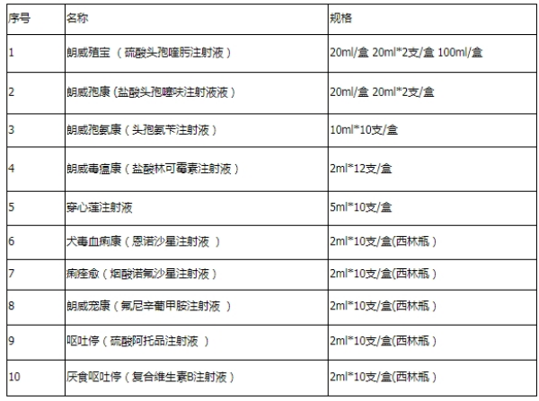 1)抗菌超威混懸液家族產品:朗威殖寶(硫酸頭孢喹肟注射液)、朗威孢康(鹽酸頭孢噻呋注射液)、朗威孢氨康(頭孢氨芐注射液