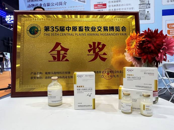 朗威明星產品硫酸頭孢朗威殖寶硫酸頭孢喹肟注射液榮獲第35屆中原畜牧業(yè)交易博覽會金獎!